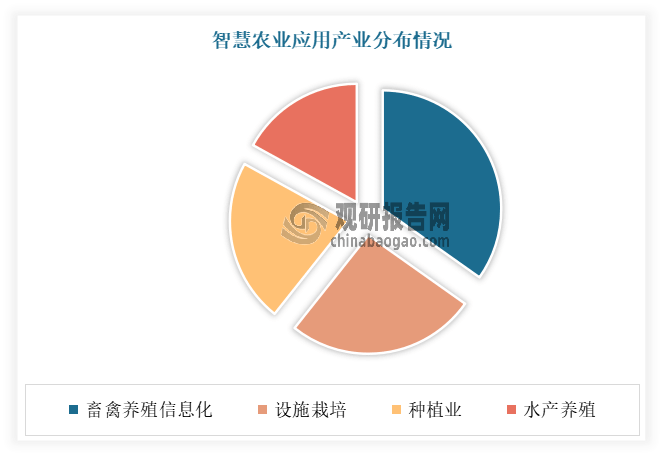 从使用财产来看,聪慧农业次要有种植业、畜禽养殖、水产养殖等。此中畜禽养殖消息化程度最高,为 34%,设备栽培、种植业、水产养殖的消息化程度别离为 25。3%、21。8%和 16。6%。