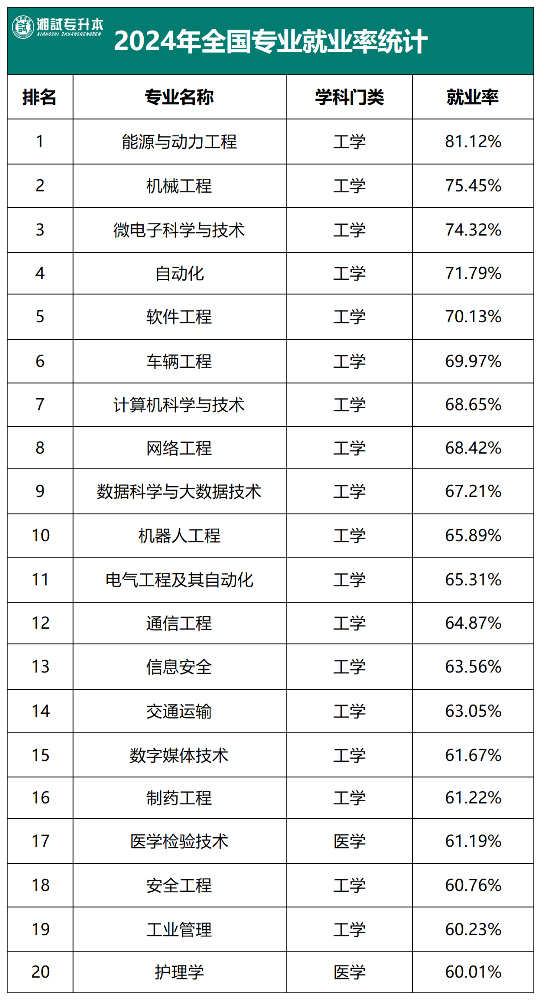 相信无论是25年即将加入测验的或是正处于大一大二的同窗,对本人的专业就业率环境都十分猎奇。近期2024年全国本科专业就业率Top20出炉,激发了不少热议。试总就连系榜单带大师一路来阐发,来看看你想要报考的专业上榜了吗?正在这份2024年本科就业率最高的专业排行榜单中,工科类专业就业率遥遥领先,工科专业有18个,占比90%;医学专业2个,占比10%。 此中,能源取动力工程以81。12%的超高就业率强势登顶。